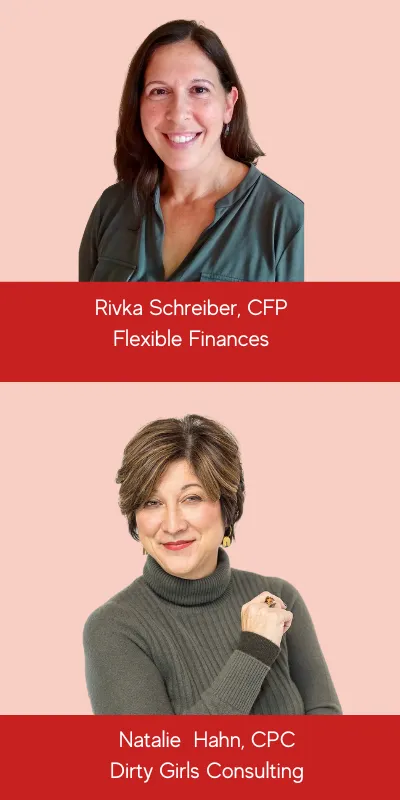 Rivka Schreiber, CFP and CEO of Flexible Finances, and Natalie Hahn, CPC and CEO of Dirty Girls Consulting, have partnered to create a unique program to help you get your financial plan on the right path to meet your goals.